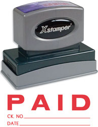 Xstamper 3249 Stock 1-Color Jumbo Title Stamp - PAID, red, impression size 7/8" x 2-3/4".