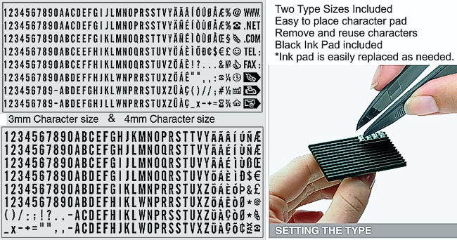 Self-Inking with easy to replace ink pad. 5000+ impressions from each pad. Eco friendly and climate neutral. Clear view precise stamp placement. Quiet and smooth operation. Available ink colors: black, red, blue, green and purple.